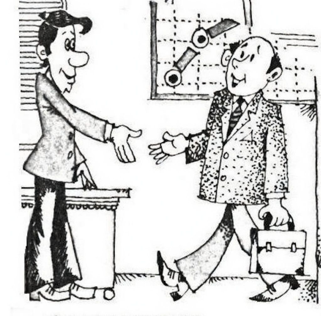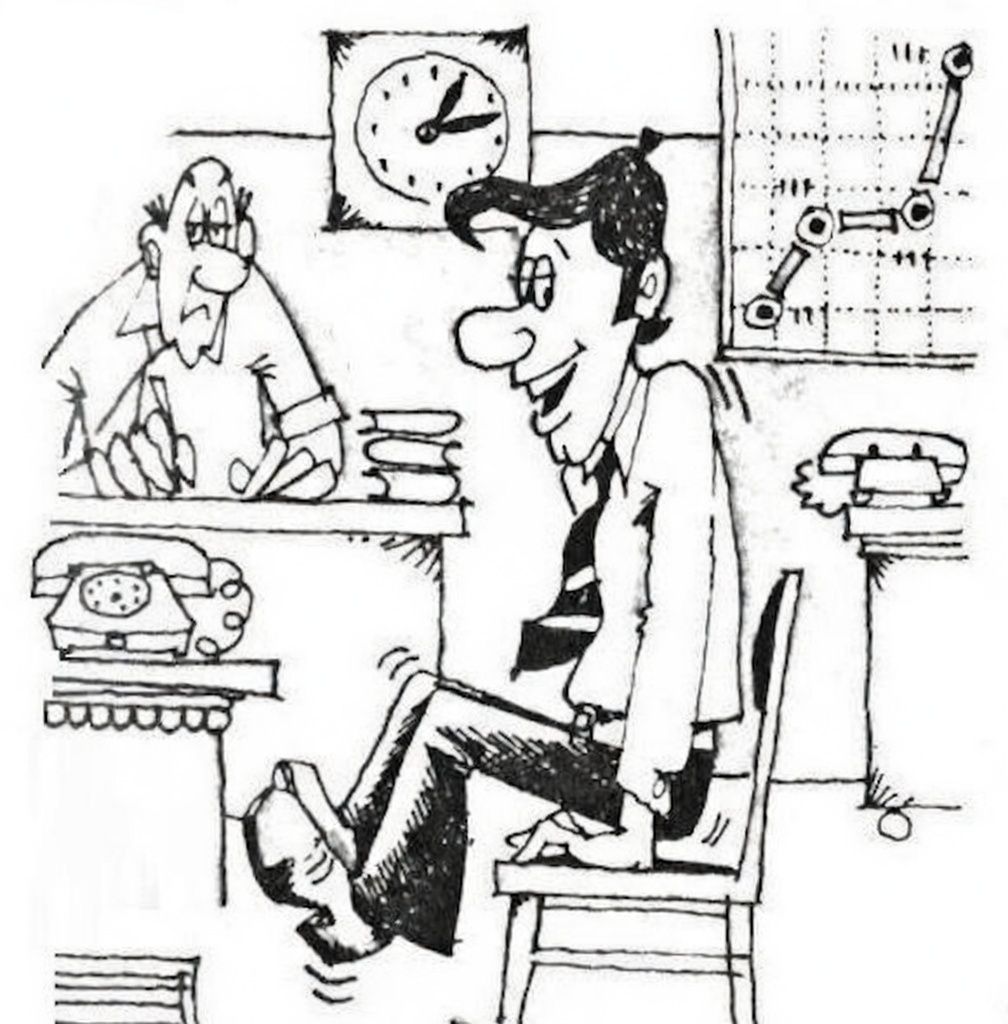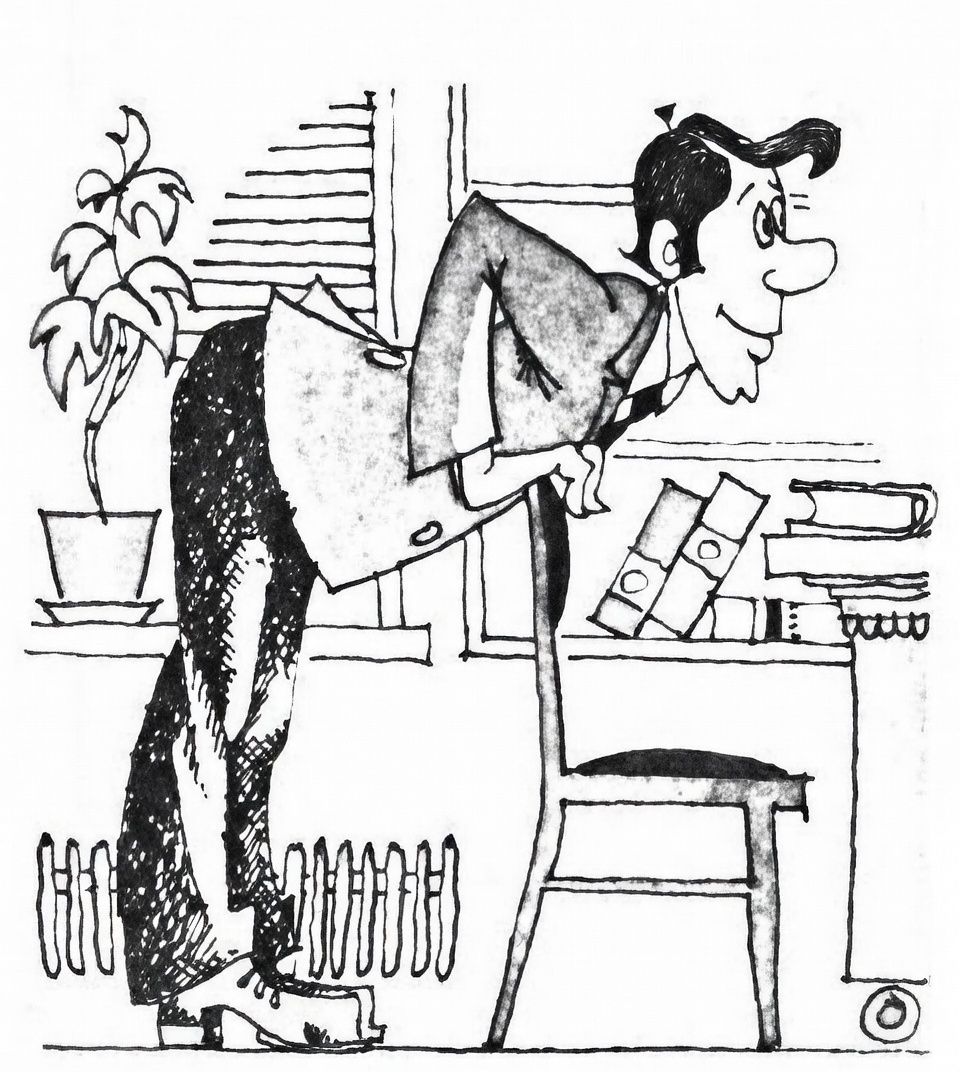 Try from time to time to change your working posture—lean back a little more, move the chair on which you are sitting farther away, or, on the contrary, closer to the table. You can simply move to a higher or lower chair to change the sitting height. Try at any opportunity to get up from your little place to pick up the phone receiver while standing, to meet anyone who enters your room standing, it will benefit your health.